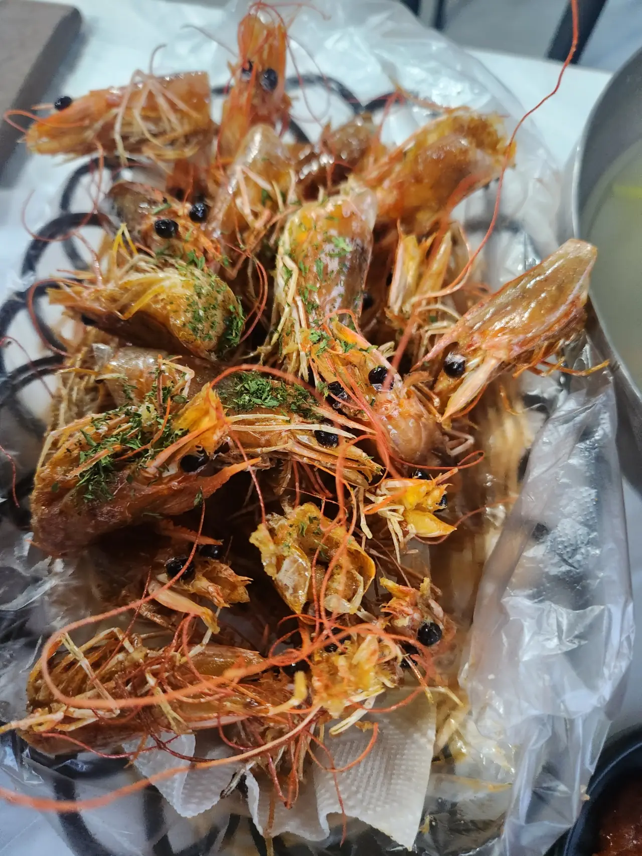 꽃게 요리로 즐거운 저녁을 보내고 있어요.