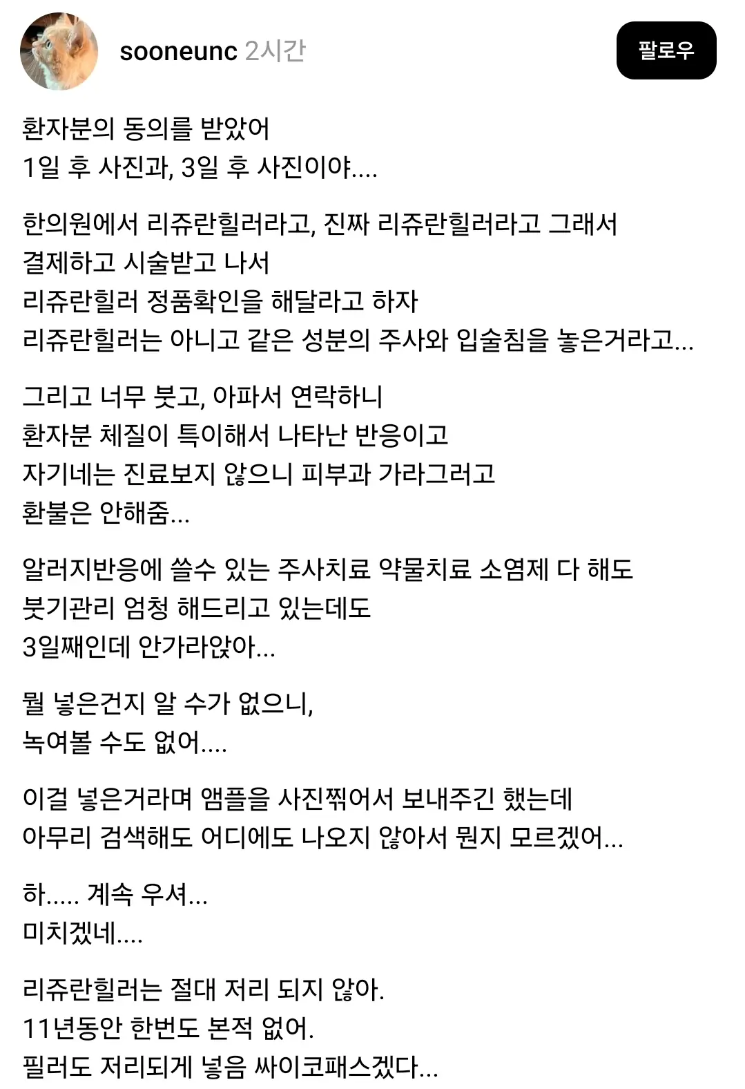 최근 한의원에서 리쥬란과 유사한 미용 시술이 이뤄지고 있는데, 가격이 저렴하고 부작용이 많아 걱정하는 목소리가 있습니다. 시술을 고려할 때는 반드시 전문가와 충분히 상담하고, 안전성을 꼼꼼히 따져보는 것이 중요합니다. 특히 한의원에서 시술하는 경우, 적절한 의료기술과 안전장치가 갖춰졌는지 확인하는 것이 필요합니다.