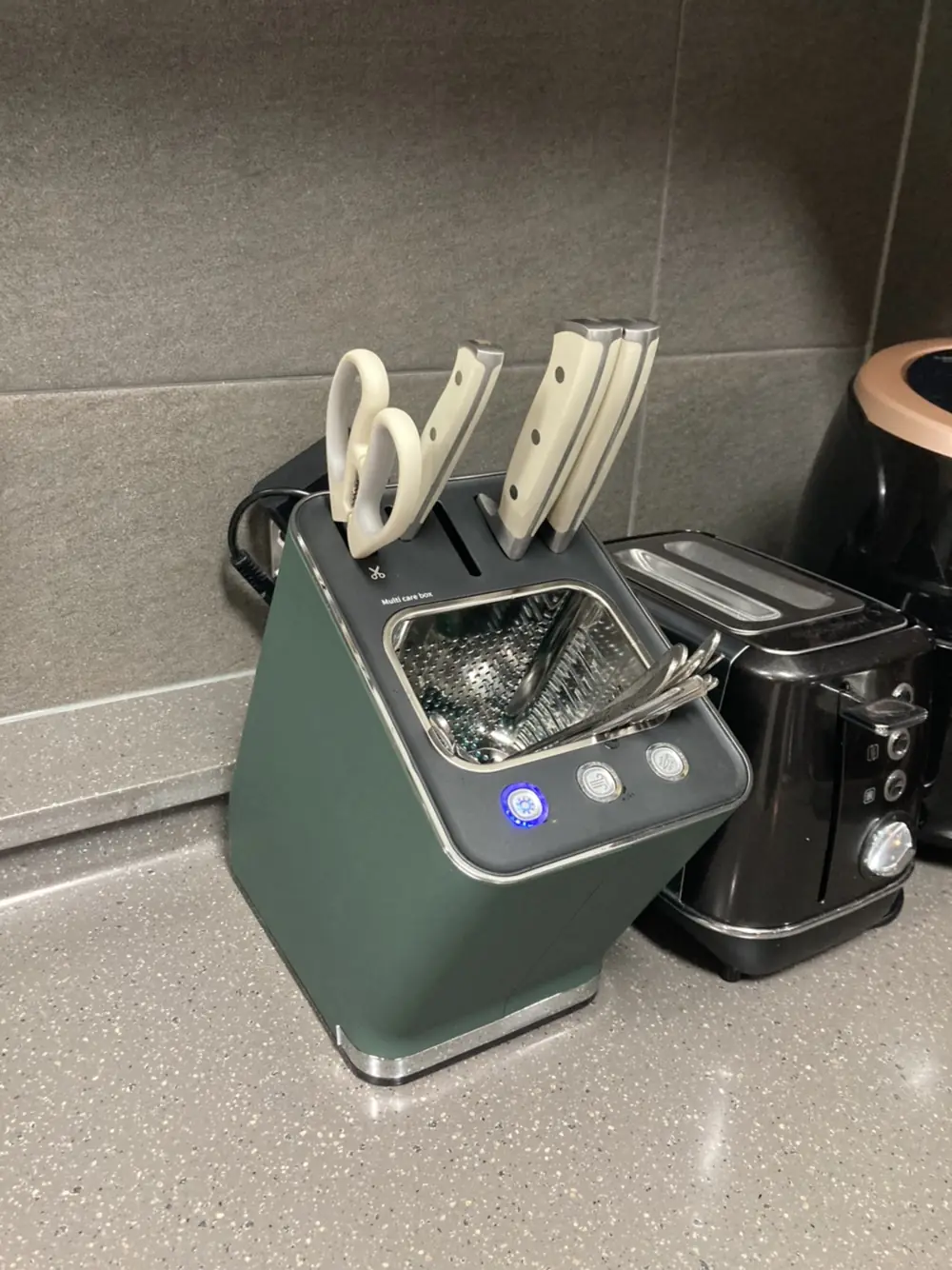 최근에 살균과 건조 기능이 있는 쿠진 나이프케어를 구매했어요. 처음에는 살 생각 없었는데 친구 집에서 보여서 괜찮아 보여 구매하게 됐어요. 칼이 깔끔하게 꽂혀 있고, 살균 후 건조까지 가능해서 위생 관리에 도움돼요. 사용법도 간단해서 어렵지 않아요. 주방에 하나 두면 칼 위생 관리와…