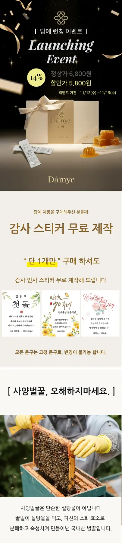 요즘 돌잔치 준비하면서 답례품 고민이 많았는데, 자연스럽고 고급스러운 느낌의 꿀스틱을 추천해요. 패키지부터 정성스럽게 준비된 느낌이 들고, 고급스러운 슬리브 박스와 금박 띠지 덕분에 받는 분들도 좋아하실 거예요. 스틱형이라 위생적이고 먹기도 편해서 어른들은 차에 넣어 드시고, 친구들은 가방에 넣고 다니며 간편하게 즐기실…